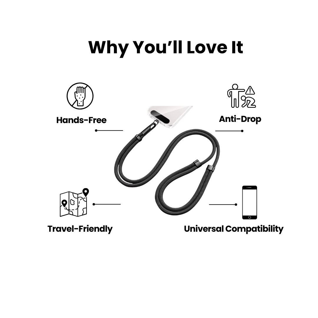 Keep your phone safe and within reach. This durable, hands-free strap lets you move freely without worrying about drops or pockets—perfect for life on the go.